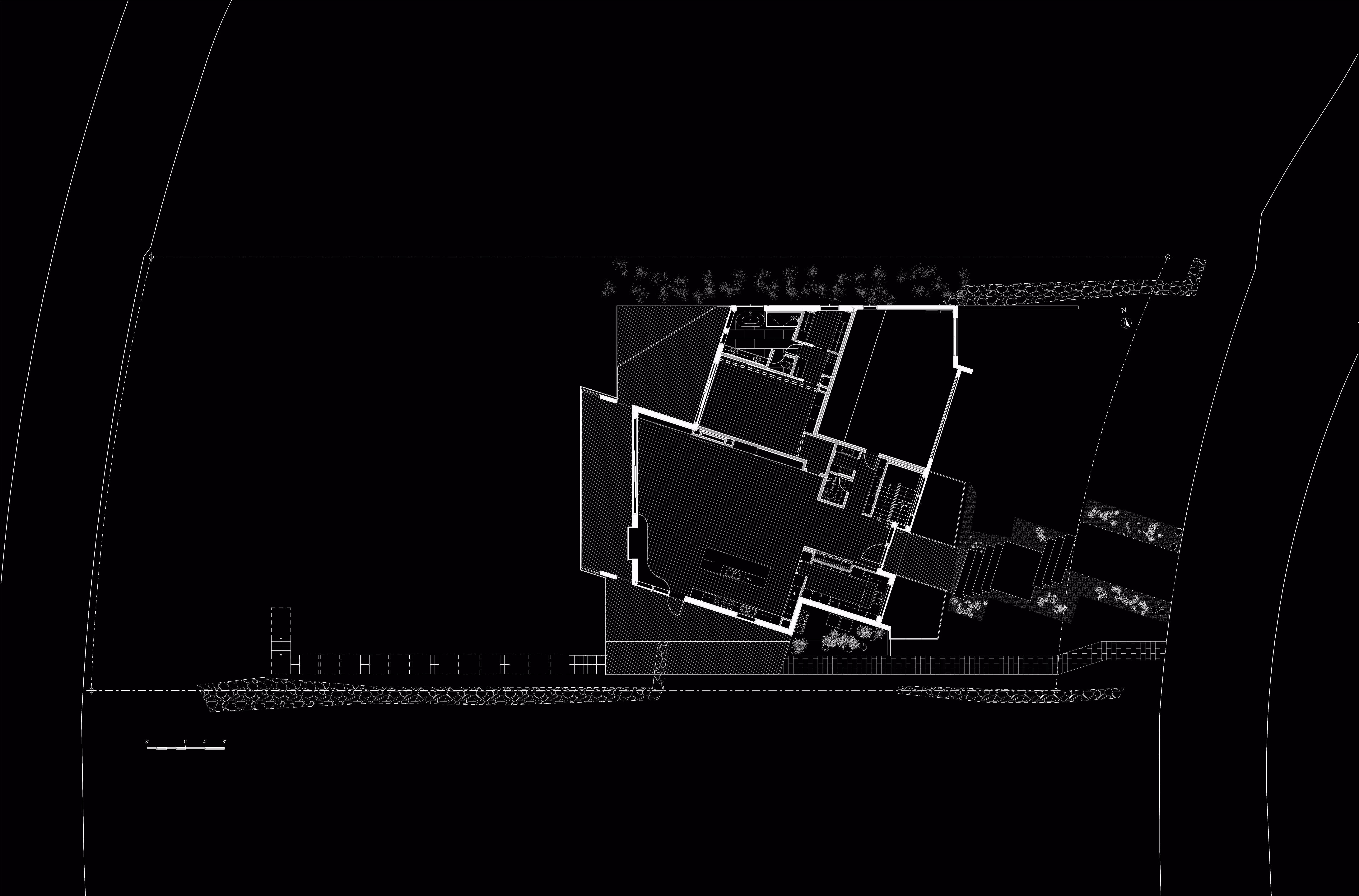 The triangular geometry shaped a simple, sculptural corner that anchors the intersection. The lower floors house convenience retail and local services, while the third floor accommodates a gym and flexible hidden kitchen space.