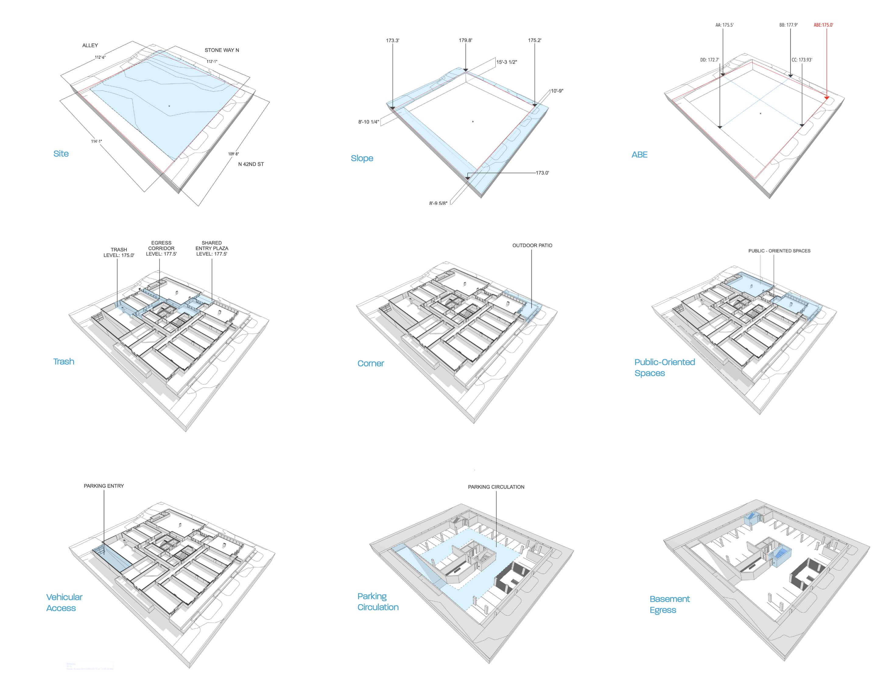 The project is a new mixed-use building with a total of 96 units, offering a mix of studio apartments, underground parking, and a large street-level commercial space. Located in Seattle, at the intersection of Stone Way N and 42nd St, the building is within walking distance of the vibrant Wallingford and Fremont neighborhoods, and centrally located between Greenlake and Gasworks Park, providing direct access to two of Seattle’s most emblematic lakes. The building will provide much-needed density in this fast-growing area in the city.